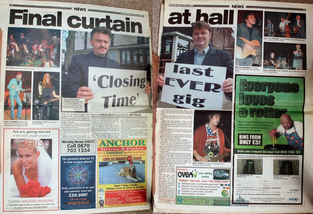 Making music is part of Widnes’s Heritage, it is what people do round here. Many people’s memories are tied to music events which took place at The Queens Hall. Local people were devastated when the building was closed and boarded up in 2004, as was The Queens Hall Studio next to it in Lacey Street. The final event ever was Closing Time on April 24th, 2004. Local musicians of all ages performed, local people of ages danced.